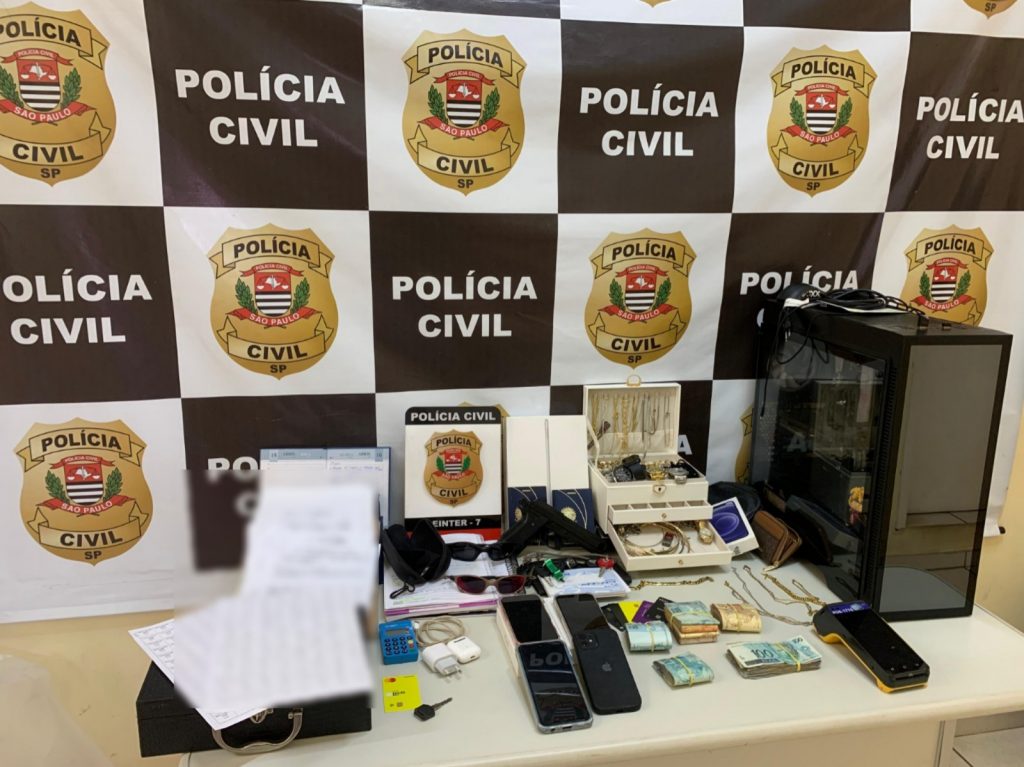 Durante o cumprimento das ordens judiciais, os agentes realizaram sete mandados de busca e apreensão e apreenderam cinco veículos, sendo dois carros e três motocicletas, além de mais de R$ 40 mil em dinheiro, joias, aparelhos celulares, um simulacro de arma de fogo e diversos documentos.